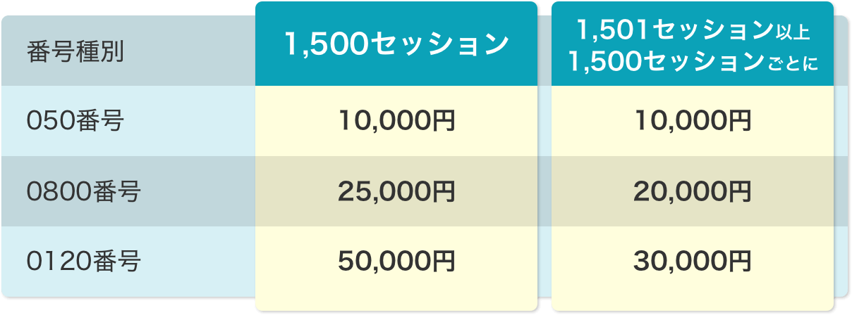 1. 番号費用 (セッションごと)