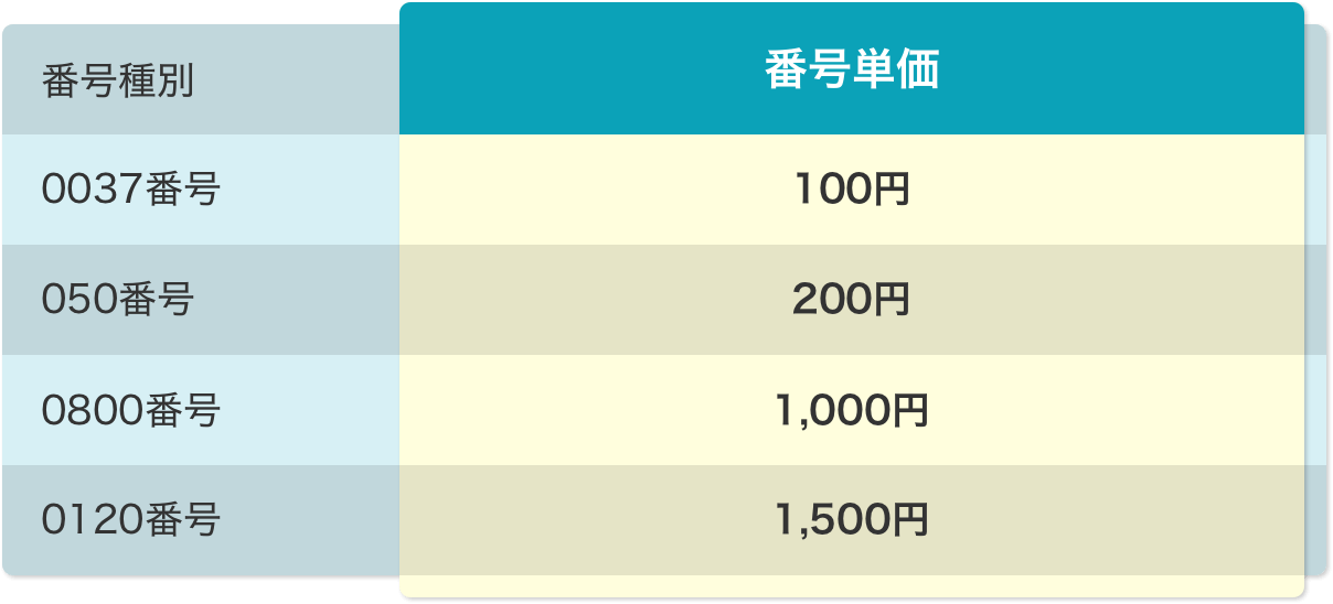 ※ 電話番号節約ロジック(特許出願中) を適用した場合の費用です